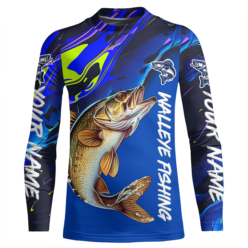 Personalized Walleye Long Sleeve Tournament Fishing Shirts, Water Camo Walleye Fishing Jerseys IPHW6095