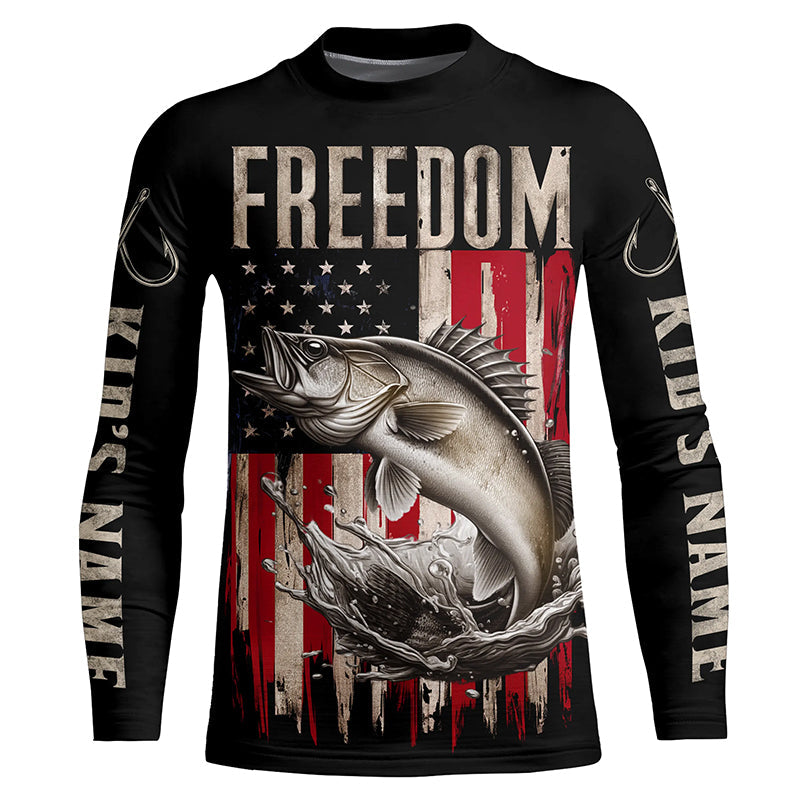 Personalized Patriotic Walleye Long Sleeve Fishing Shirts, American Flag Fishing Shirts IPHW6810
