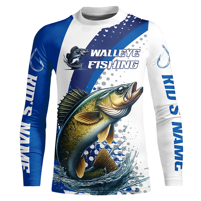 Custom Walleye Long Sleeve Fishing Shirts, Walleye Fishing Tournament Shirts | Blue IPHW6830