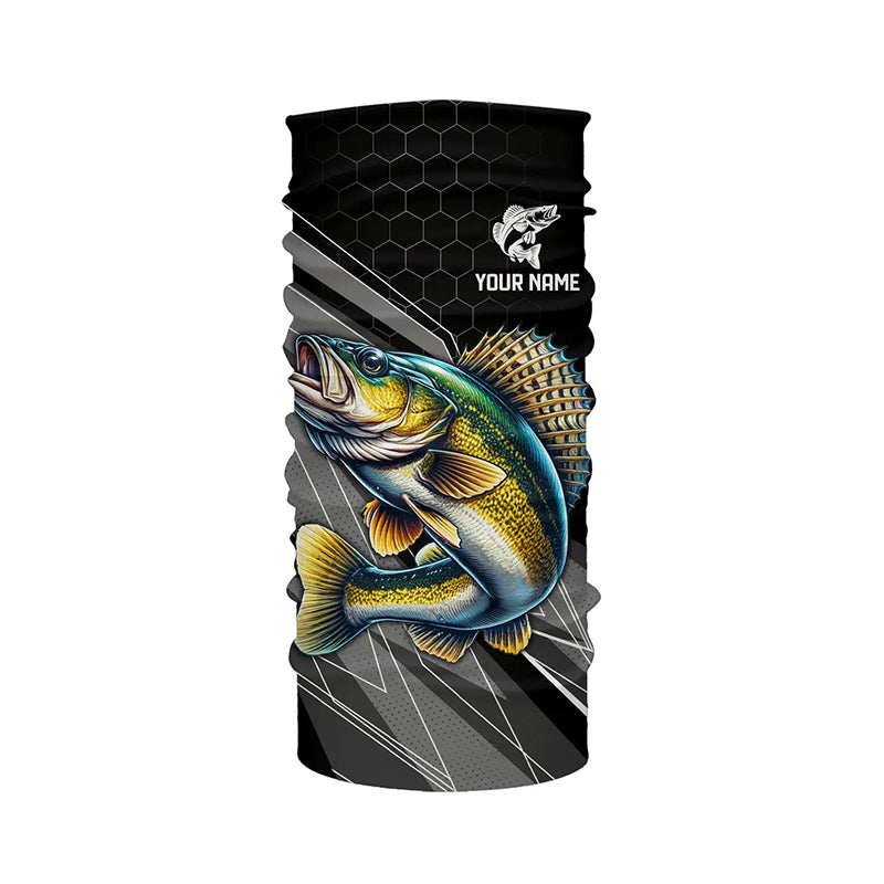 Personalized Black camo Walleye Fishing Jerseys, Walleye Long Sleeve Fishing Tournament Shirts NQS8449