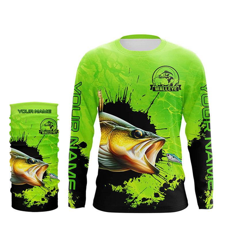 Personalized Walleye fishing Performance long sleeve Fishing Shirts, Walleye fishing jerseys | Green NQS6941
