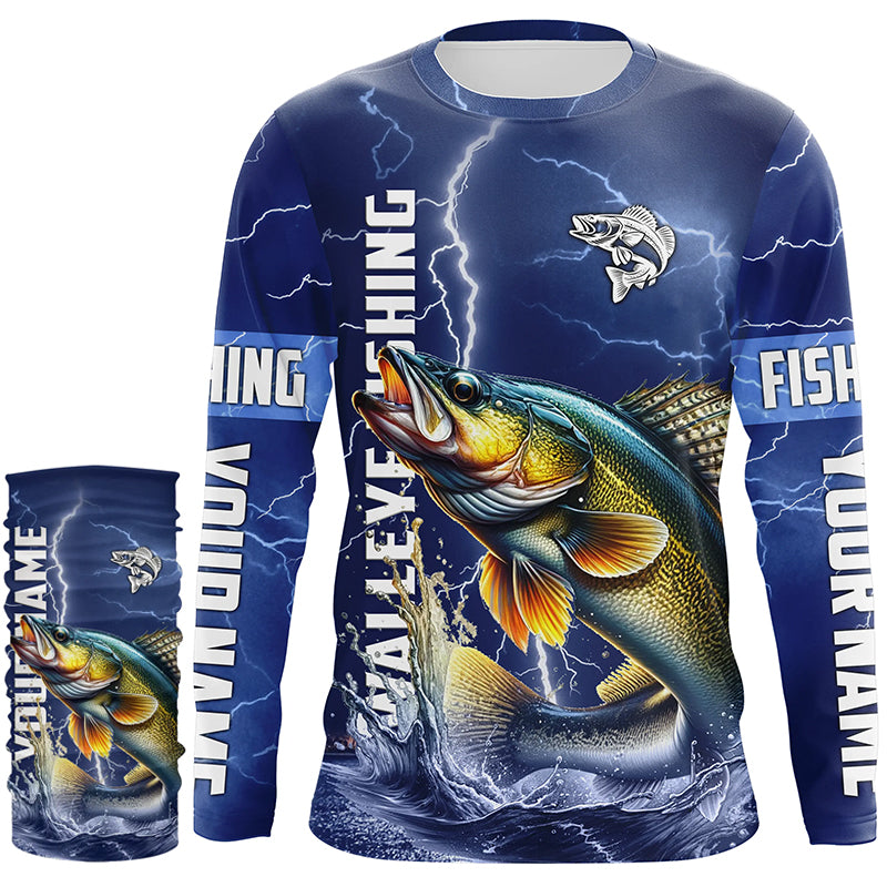 Walleye Fishing blue lightning jerseys custom name performance Long Sleeve tournament fishing shirts NQS5352