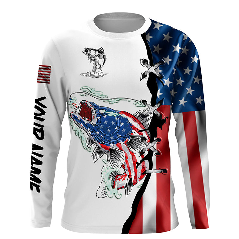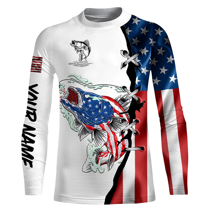 Walleye fishing legend American flag patriot UV protection Customize name long sleeves fishing shirts NQS4493