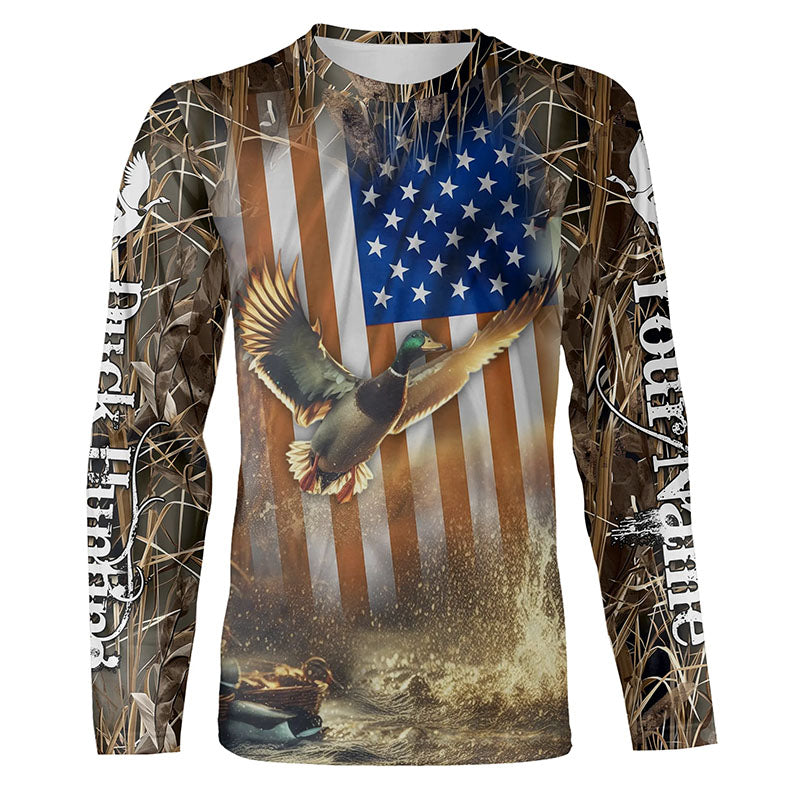 Duck Hunting American flag Waterfowl Camo Custom name Shirts for Men, Kid - Duck hunting gifts FSD2114