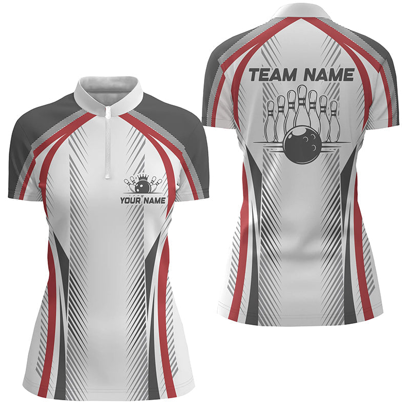 ✔️ Custom Women's Bowling Shirts Our uniquely designed bowling polo and quarter-zip shirts are ideal for proud female bowlers who want to make a bold statement. With a stylish form and distinctive design, these shirts set you apart from the rest, highlighting your passion and confidence in bowling. Add your personal touch to create a one-of-a-kind shirt that carries your unique imprint.