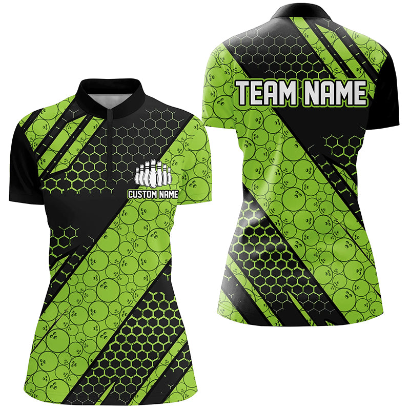Bowling Ball Pattern Custom Bowling Team Jerseys, Bowlers Shirts For Women | Green IPHW6475