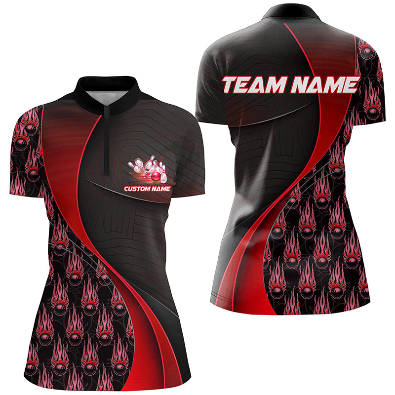 Flame Bowling Ball Pattern Custom Bowling Shirts For Women, Bowling Team Jerseys | Red IPHW6497