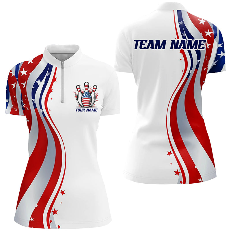 Personalized Patriotic Bowling Shirts For Women, Ameircan Flag Bowling Team Jersey Styles IPHW6670