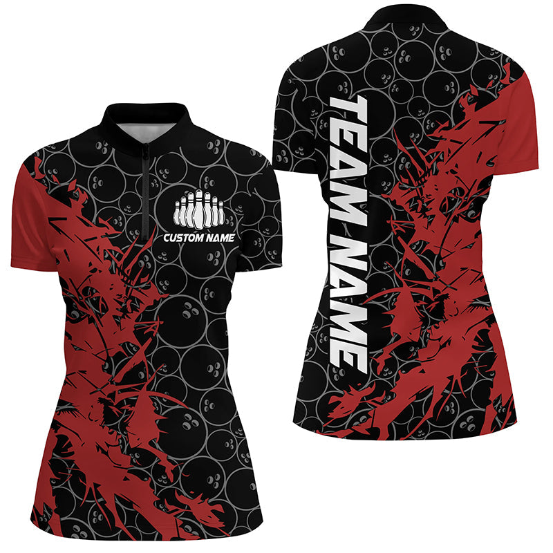 Black And Red Customized Bowling Shirts For Women, Bowling Jerseys Team Bowling Shirts IPHW6982