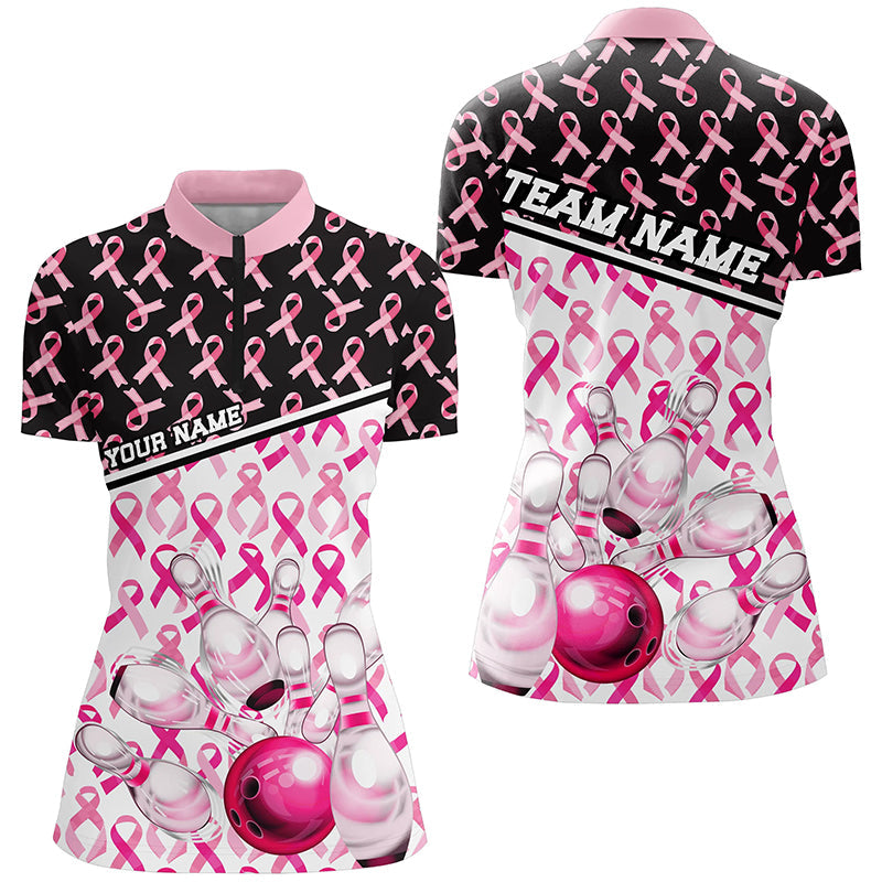 Black And Pink Breast Cancer Awareness Ribbons Custom Bowling Shirts For Women IPHW7007