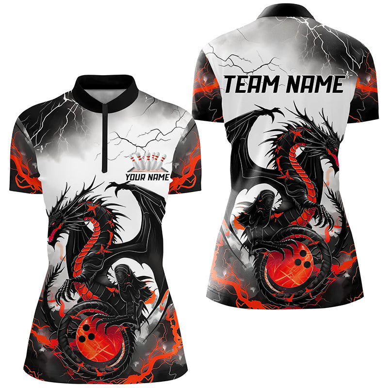 Black And Red Thunder Lightning Custom Dragon Ladies Bowling Shirts, Bowling League Shirts IPHW7063