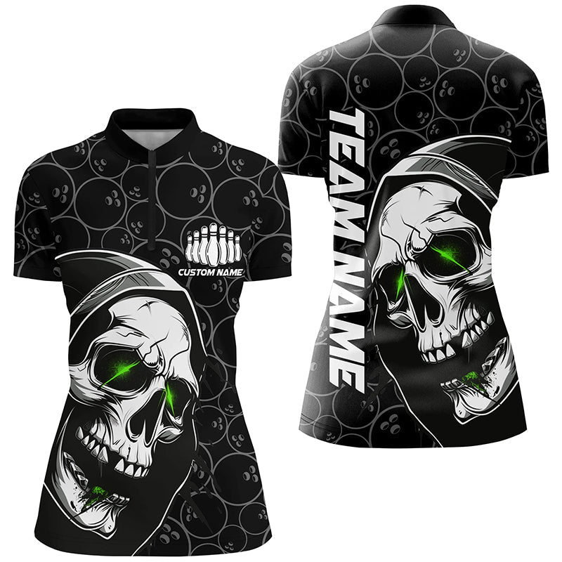 Custom Halloween Skull Bowling Shirts For Women, Personalized Bowling League Shirts | Green IPHW7077