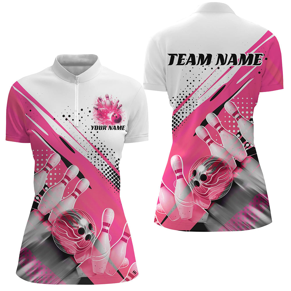 ✔️ Custom Women's Bowling Shirts Our uniquely designed bowling polo and quarter-zip shirts are ideal for proud female bowlers who want to make a bold statement. With a stylish form and distinctive design, these shirts set you apart from the rest, highlighting your passion and confidence in bowling. Add your personal touch to create a one-of-a-kind shirt that carries your unique imprint.