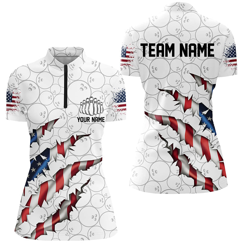 Custom Patriotic Bowling Shirts For Women, US Bowling Team Shirts American Flag Bowling IPHW7382