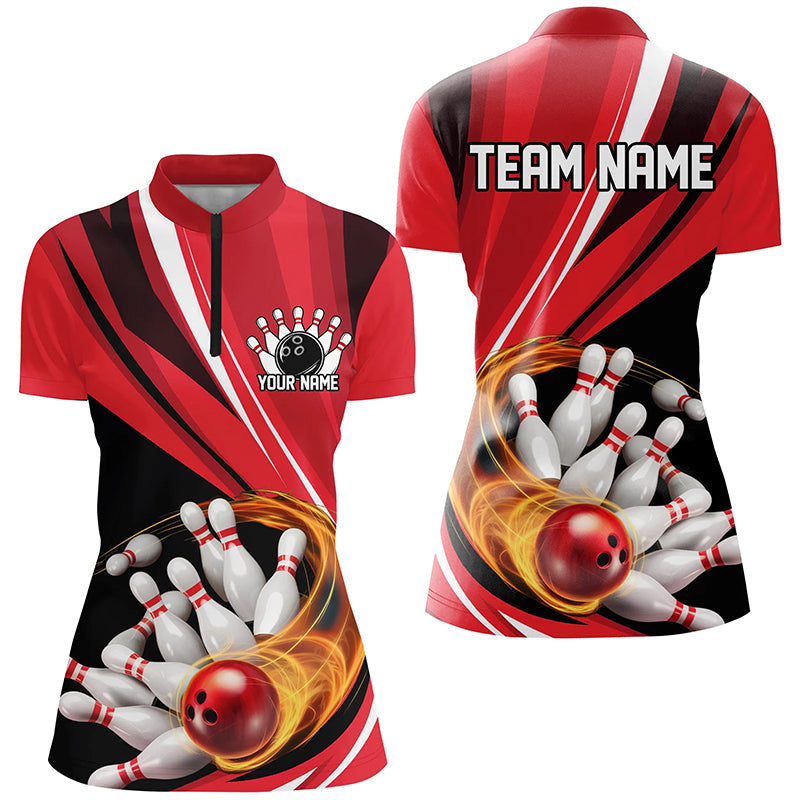 Custom Red Flame Ladies Bowling Shirts, Bowling League Bowling Team Shirts Bowlers Outfit IPHW7414
