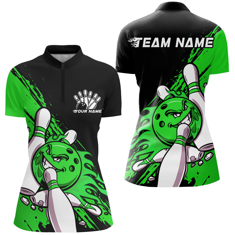 ✔️ Custom Women's Bowling Shirts Our uniquely designed bowling polo and quarter-zip shirts are ideal for proud female bowlers who want to make a bold statement. With a stylish form and distinctive design, these shirts set you apart from the rest, highlighting your passion and confidence in bowling. Add your personal touch to create a one-of-a-kind shirt that carries your unique imprint.