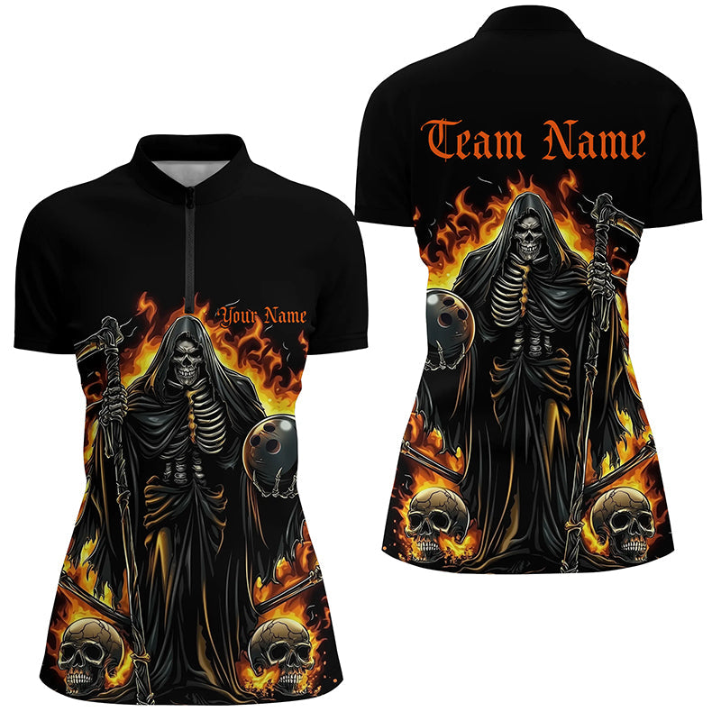 Custom Grim Reaper Flame Ladies Bowling Shirts, Unisex Bowling Team Shirts Halloween Outfit IPHW7633