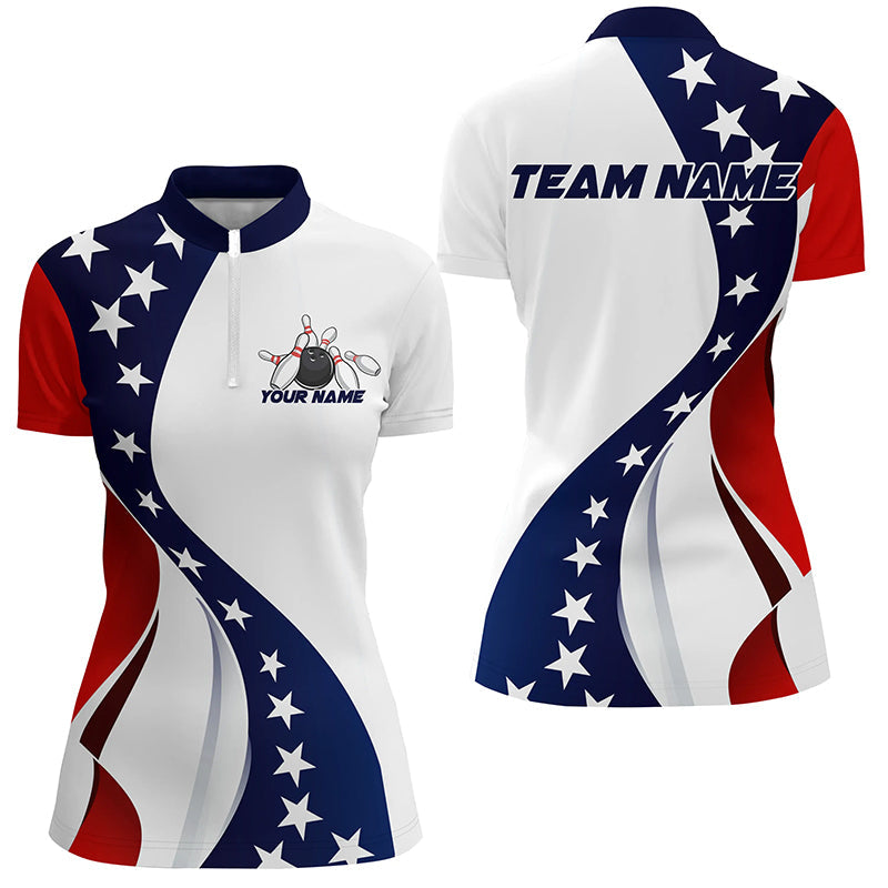 American Flag Custom Patriotic Bowling Shirts For Women, Team Bowling League Shirts Uniform IPHW7634