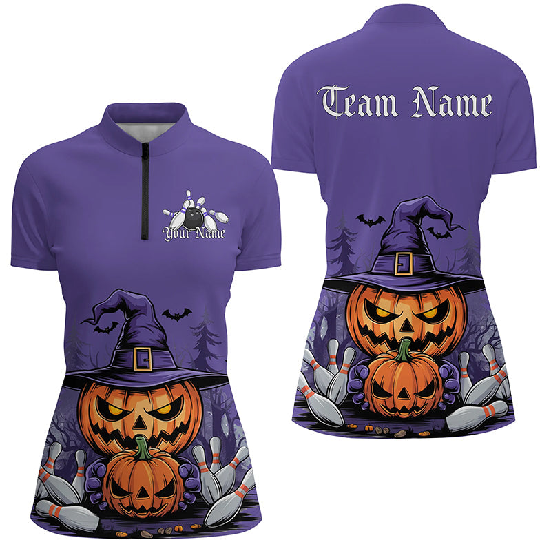 Purple Custom Halloween Ladies Bowling Shirts, Pumpkin Bowling Team Shirt Halloween Outfit IPHW7648