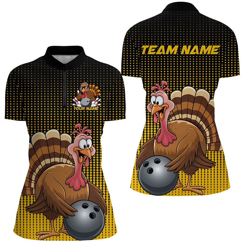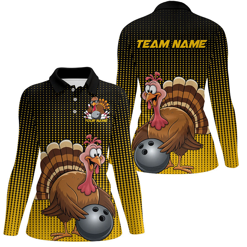 Black And Yellow Custom Funny Thanksgiving Ladies Bowling Shirts, Turkey Bowling Team Shirt IPHW7871