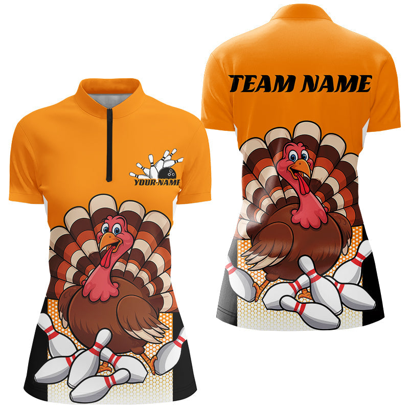 Custom Yellow Funny Turkey Bowling Team Shirts For Women, Thanksgiving Bowler Outfits IPHW7888
