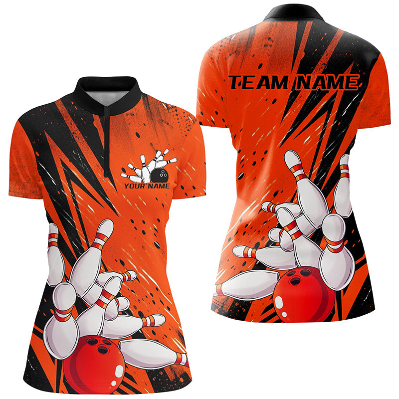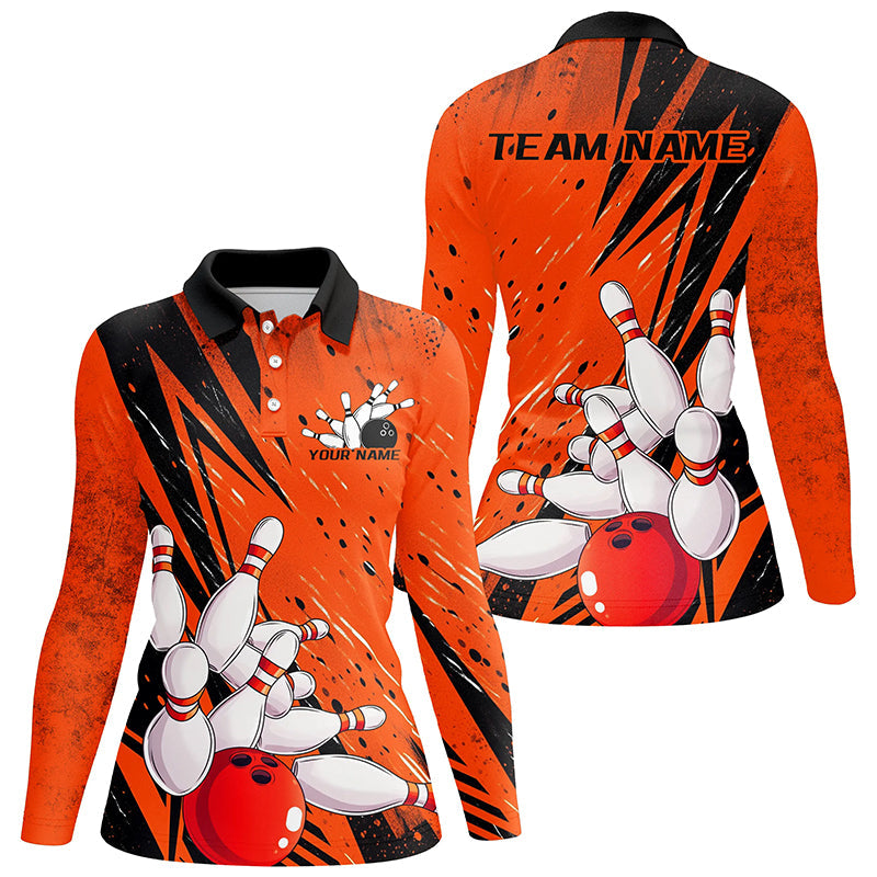 Black And Orange Custom Grunge Ladies Bowling Shirts, Bowling League Shirt Bowling Jersey IPHW7906