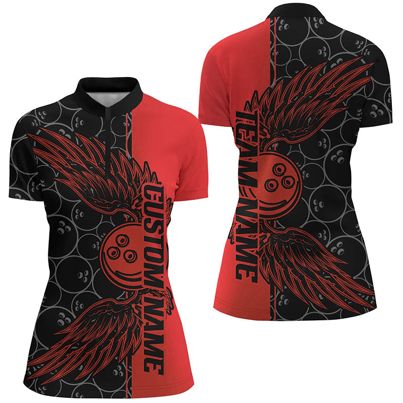 Black And Blue Custom Bowling Ball And Wings Bowling Shirts For Women, Bowling Team Uniform IPHW7927