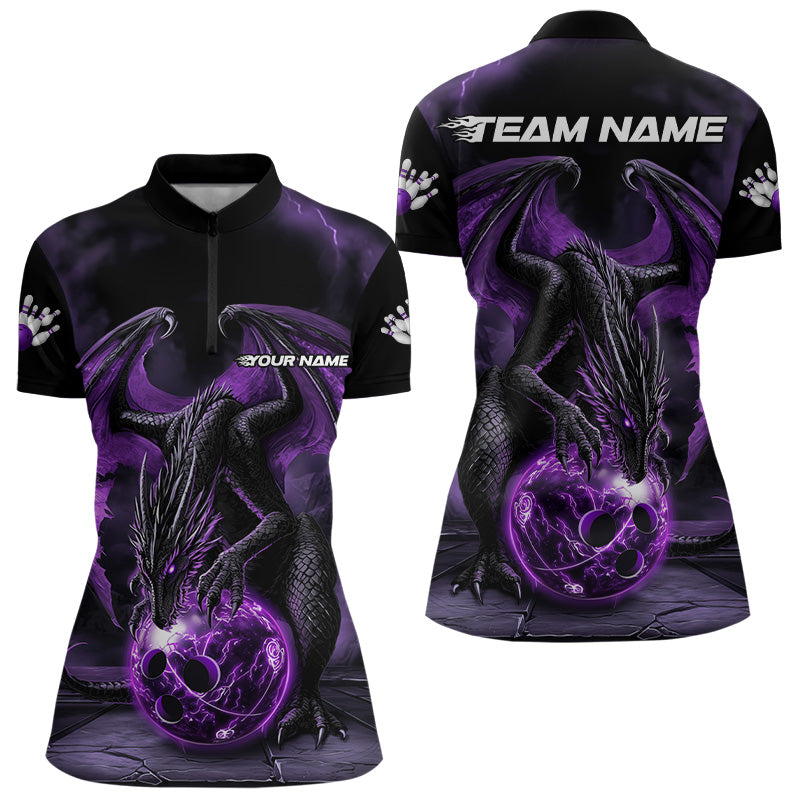Black And Purple Custom Bowling Team Shirts For Women, Dragon Bowling Uniform Bowler Outfit IPHW7990