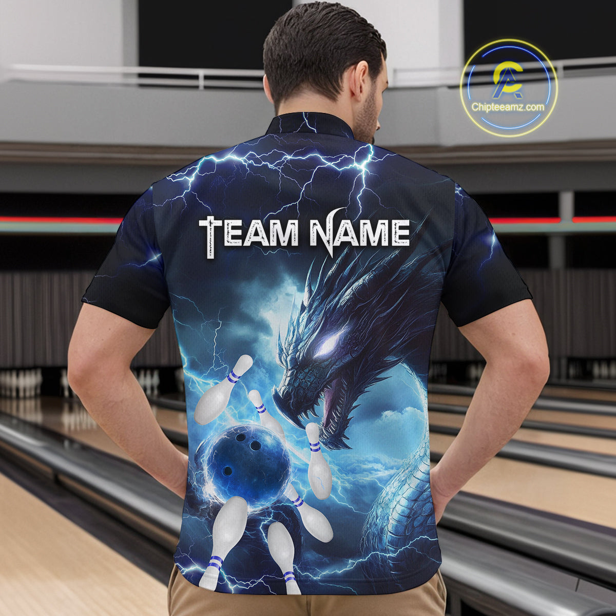 Custom Dragon Bowling Shirt Blue Thunder Bowling Jersey for Men Women Team MBL82