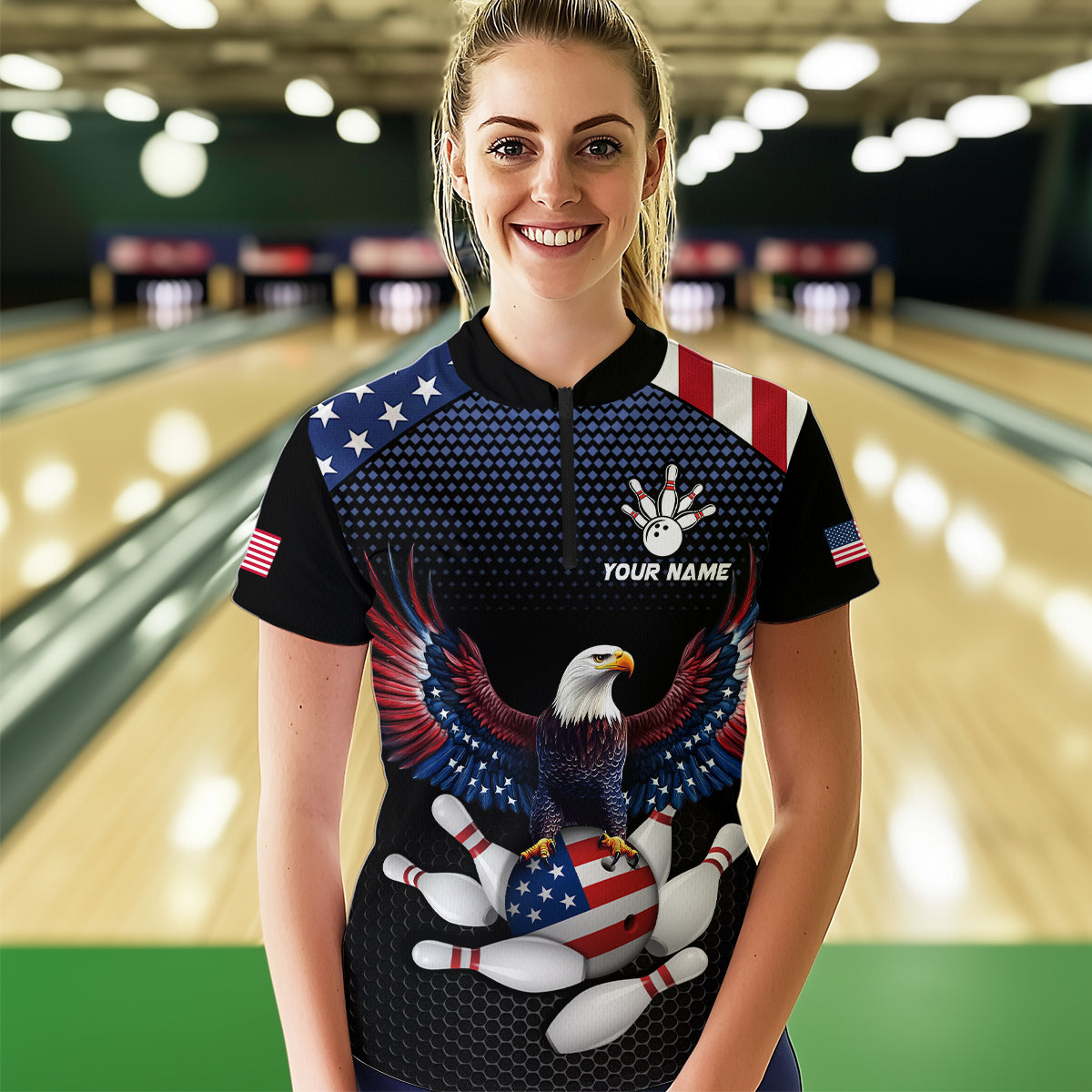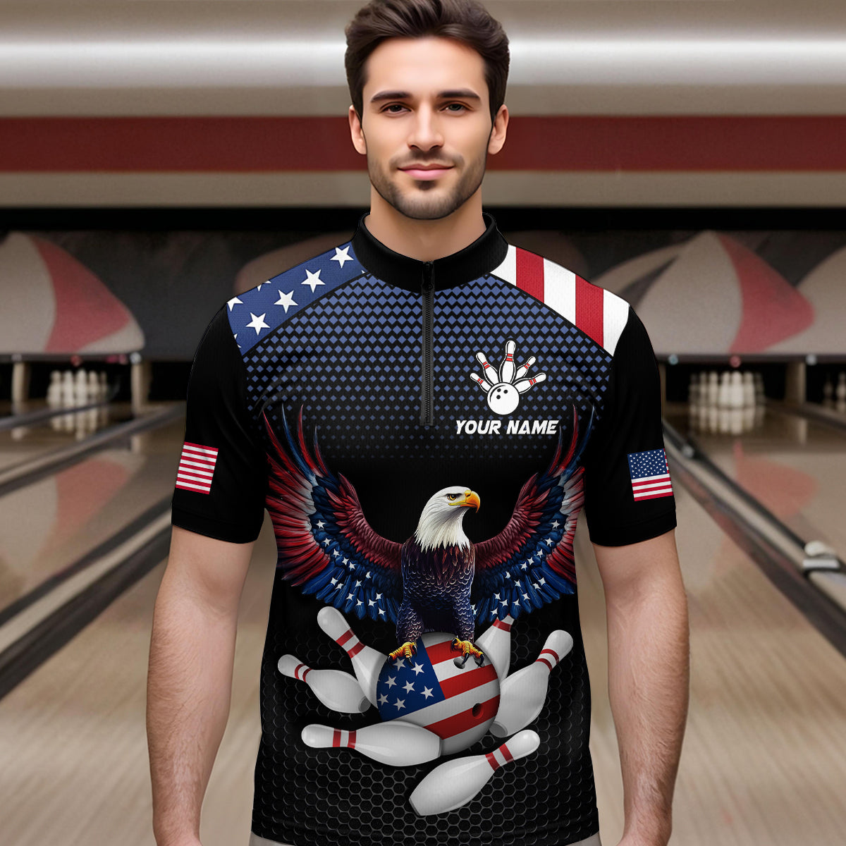 Custom Eagle Bowling Team Shirt American Bowling Quarter-Zip Jersey for Men Women QZT658