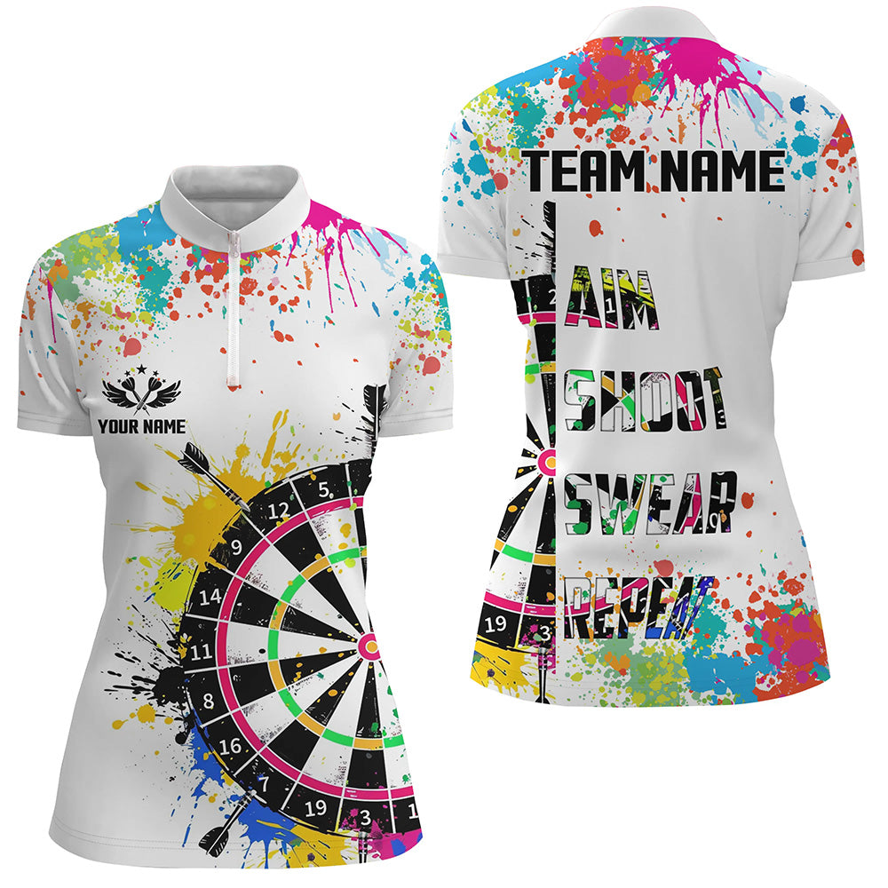Funny Dartboards Colorful Paint Aim Shoot Swear Repeat Darts Shirt For Women Custom Darts Team Jersey TDM1585