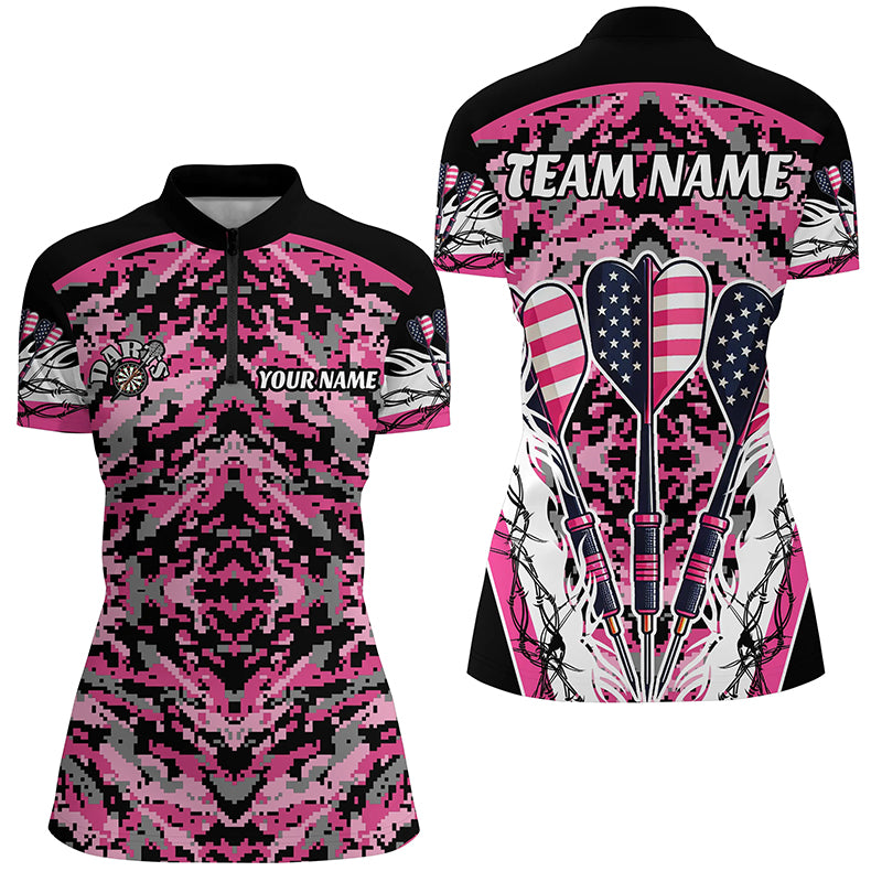Pink Grunge Camo Darts Arrow US Flag Women Darts Shirts Custom Camo Darts Jersey Team Shirts TDM1670
