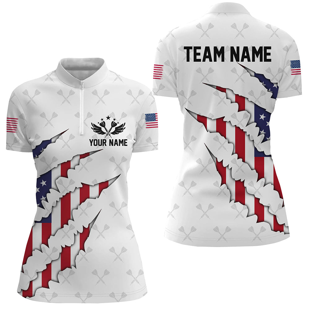 Personalized American Flag Darts Pattern Polo & Quarter-Zip Shirts For Women, Patriotic Darts Jerseys TDM1675
