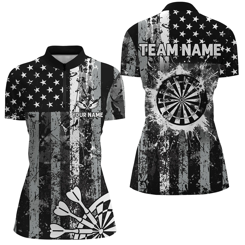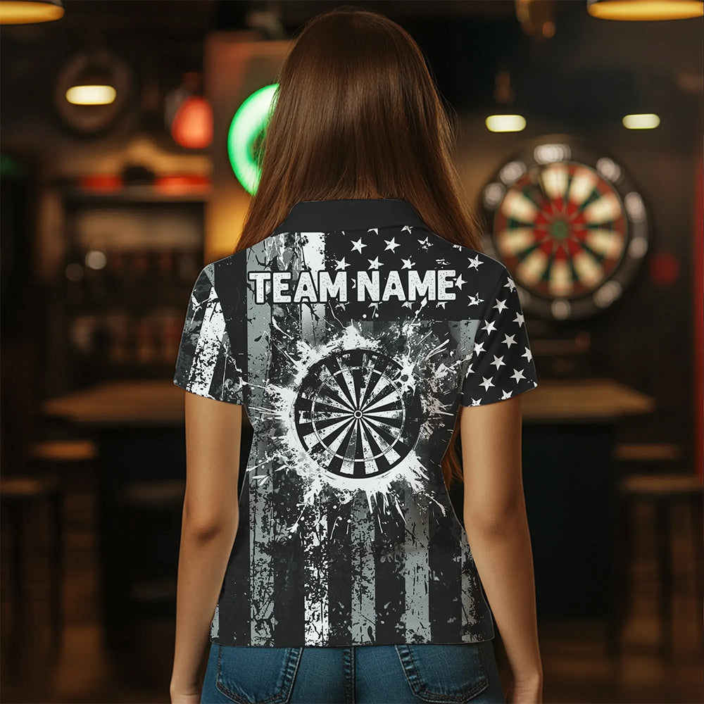 Custom Black Grunge US Flag Patriotic Darts Shirt For Women, Retro Darts Board Darts Team Jerseys TDM2273