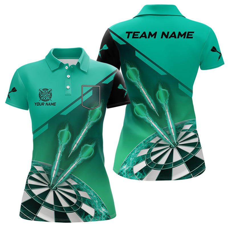 Turquoise Darts Jersey For Women Custom Darts Team Shirt With Pocket Option TDM3519