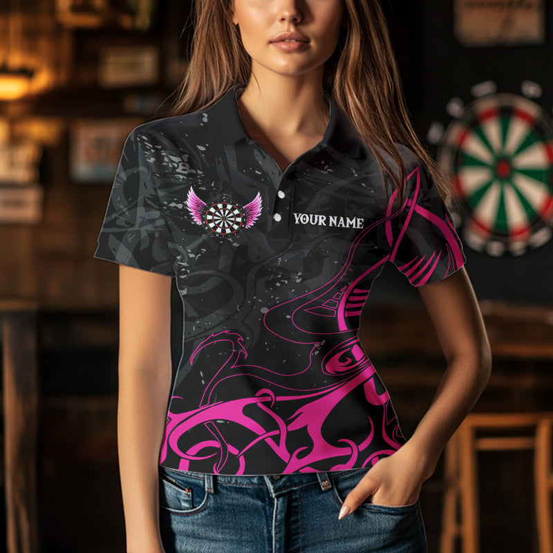 Personalized Pink Black Arrow Wings Dart Shirt For Women Custom Dart Jerseys TDM3596