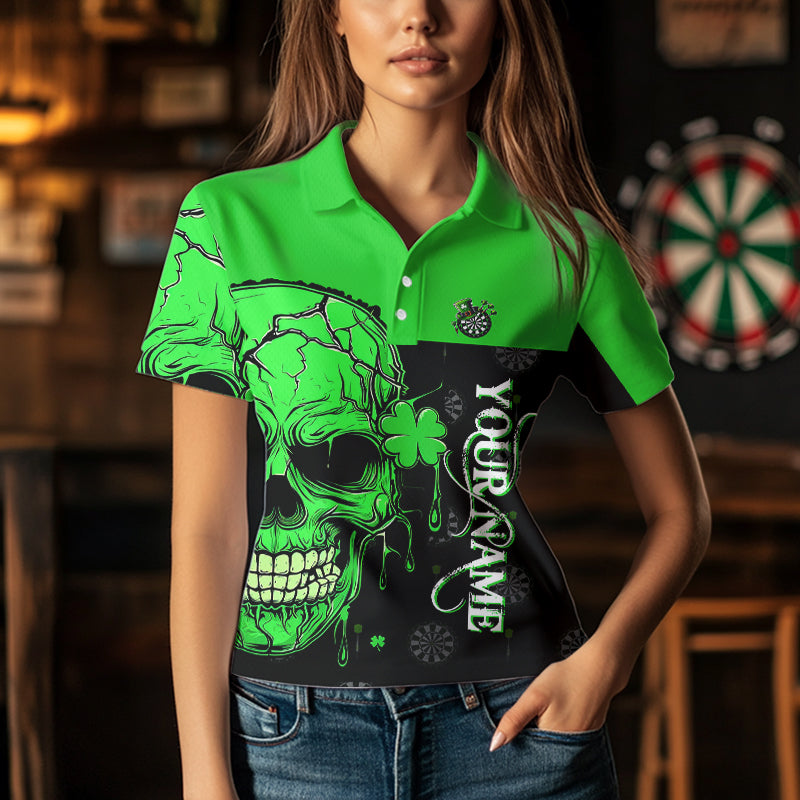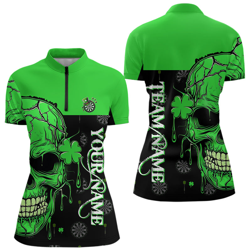 Personalized Green Shamrock Skull Dart Shirts For Women Custom Saint Patrick Day Dart Jerseys Outfit TDM3613