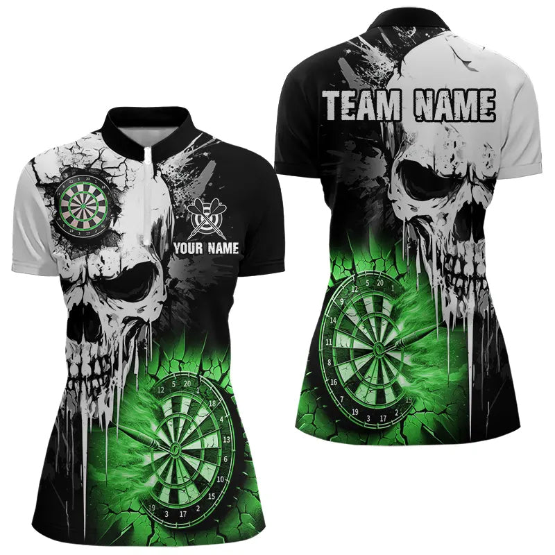 Personalized Grunge Skull Crack Wall Women Dart Shirts Custom Darts League Team Jerseys |Green TDM3699