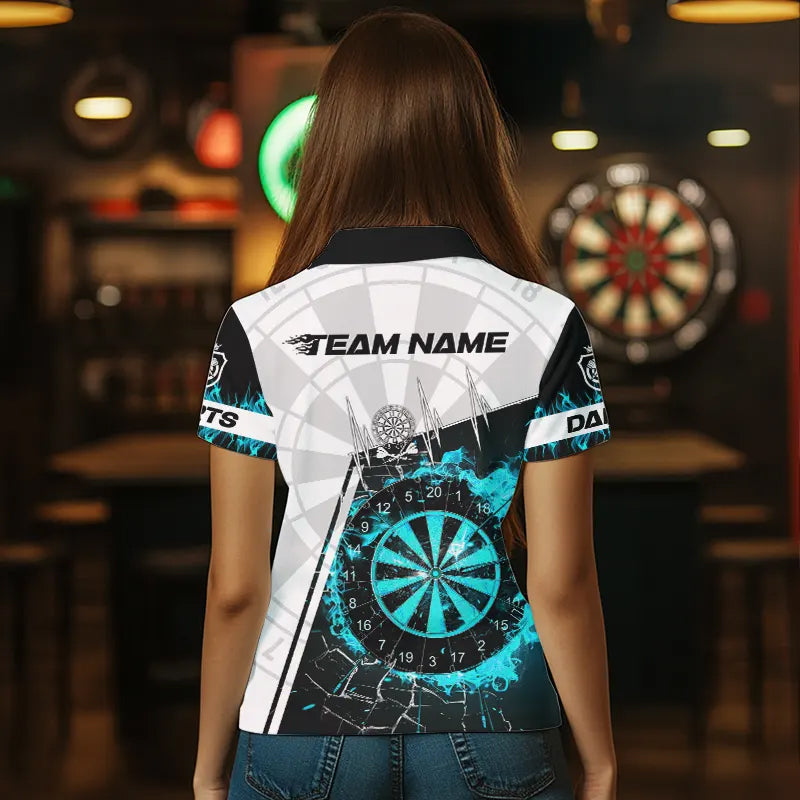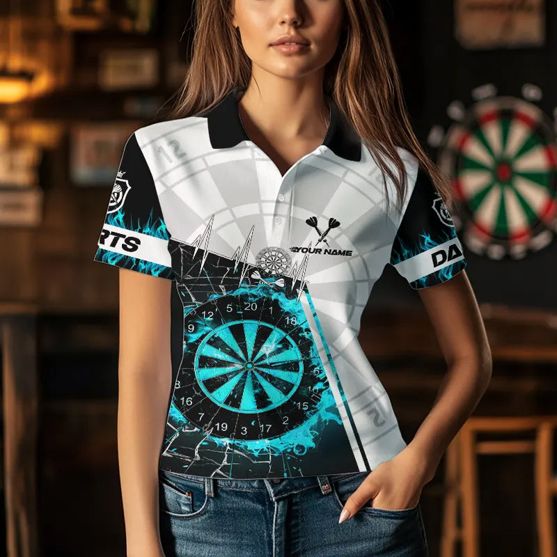 Personalized Turquoise Break Glass Dartboard Fire Polo, 1/4 Zip Custom Women Dart Shirts Dart Jersey TDM3775