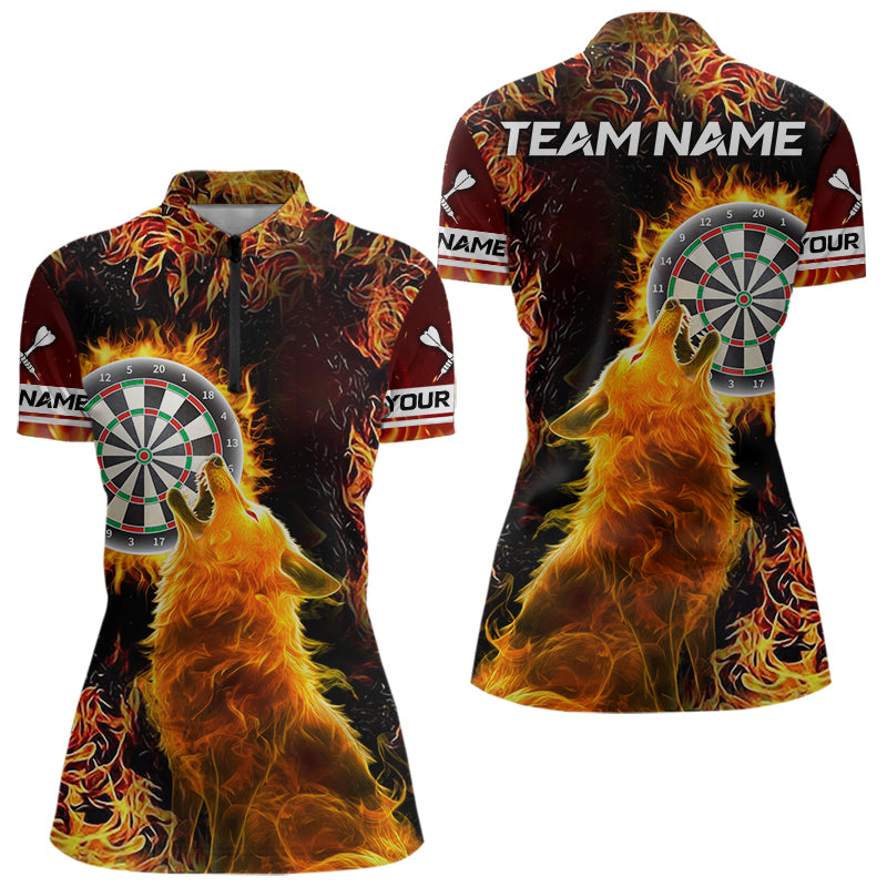 Orange Flame Dartboard Wolf Dart Shirts For Women Custom Dart Jersey Polo & 1/4 Zip, Dart Team Shirts TDM3783