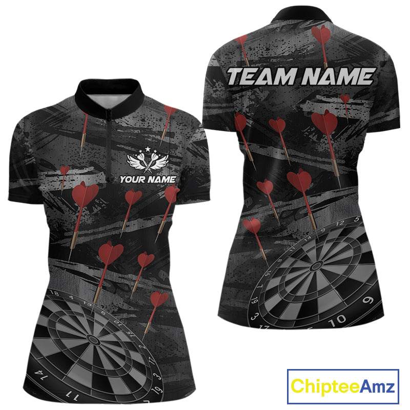 Black And Grey Grunge Dart Arrow Dart Shirts For Women Custom Dart Jerseys, Darts Team Shirts TDM3822