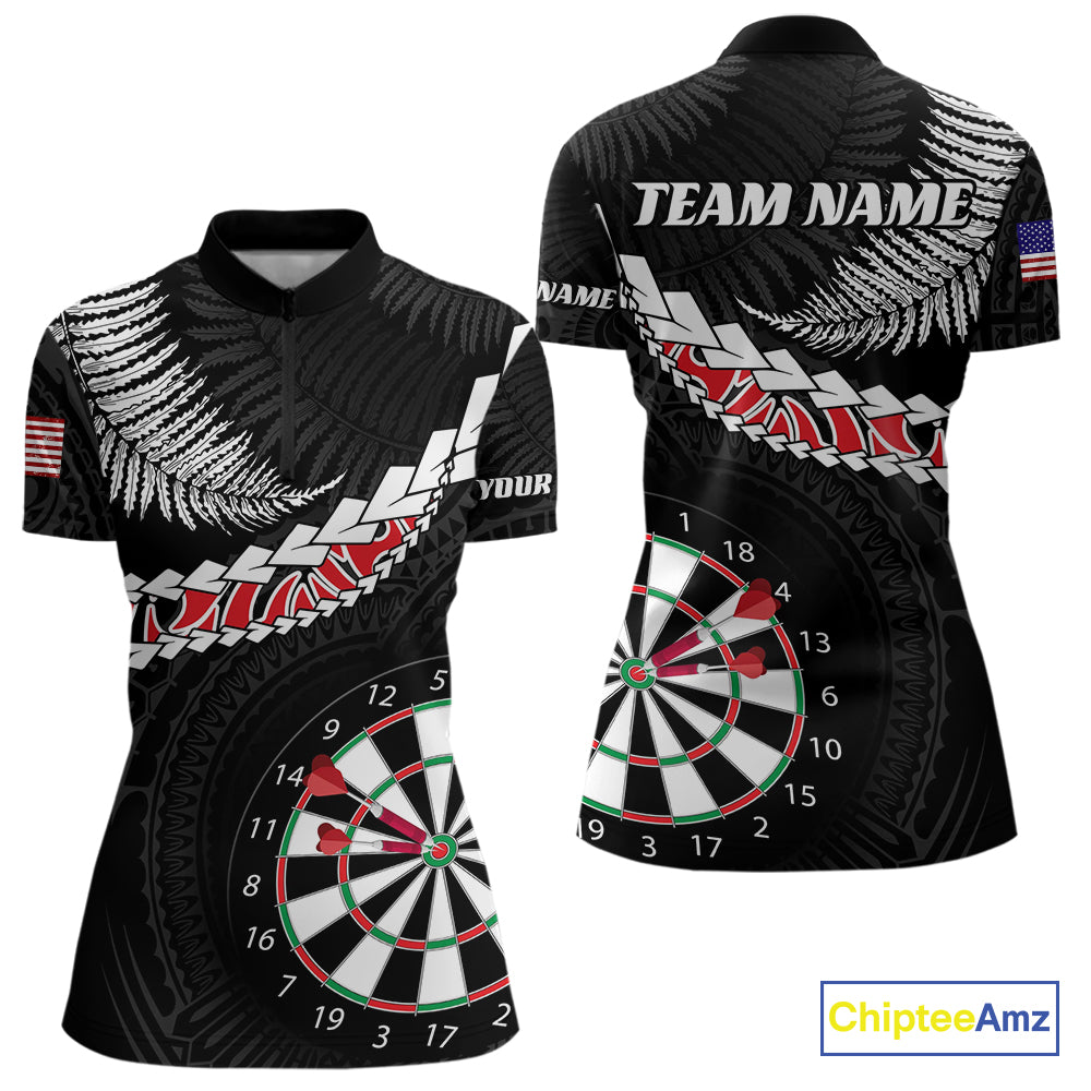 Personalized US Flag Tribal Dart Shirts For Women Custom Team Polo & Quarter Zip Dart Jerseys TDM3992