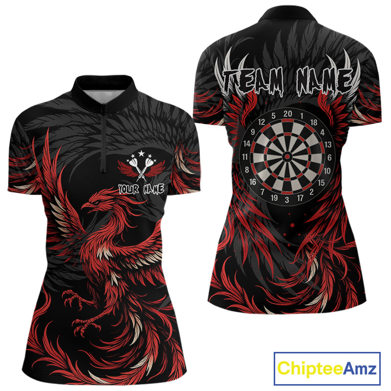 Personalized Phoenix Dartboard Wings Women's Dart Shirts Custom Red And Black Darts Team Jerseys TDM4118