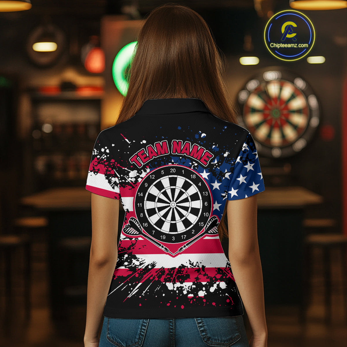 Personalized American Flag Darts Shirt For Women Custom Grunge Paint Splash Patriotic Dart Jersey TDM4171