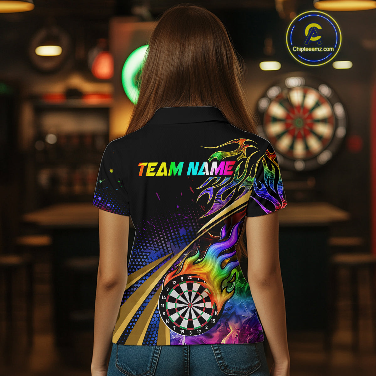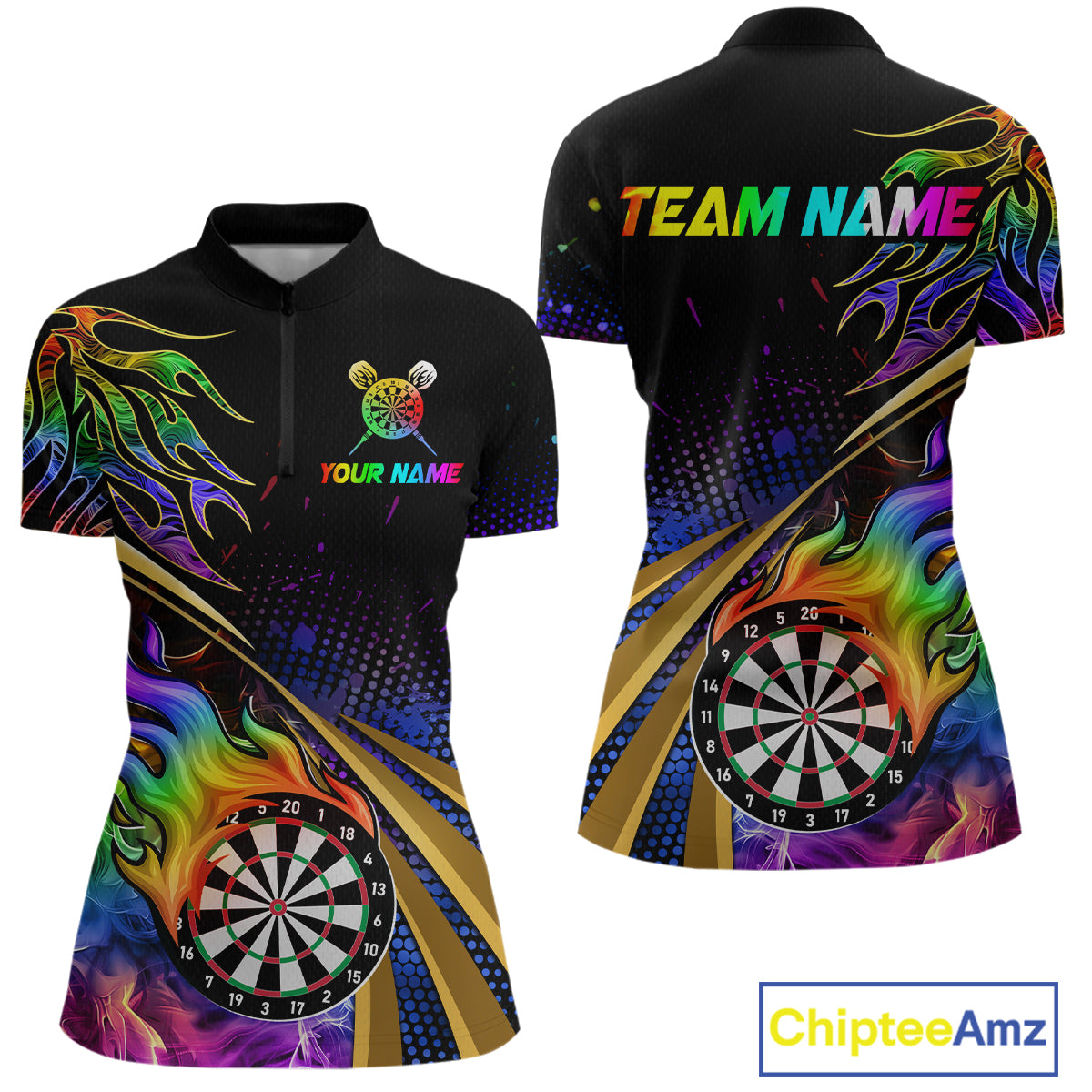 Personalized Colorful Flame Darts Shirt For Women Custom Darts League Team Jerseys Polo & 1/4 Zip TDM4215