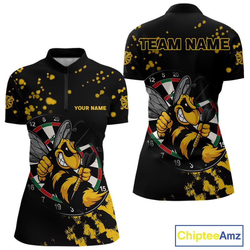 Personalized Yellow Black Funny Bee Darts Shirt For Women Custom Darts Jerseys, Best Darts Gifts TDM4294