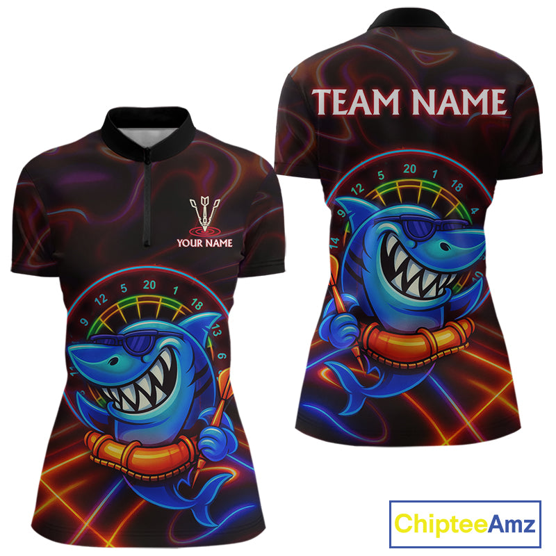 Personalized Neon Funny Shark Darts Shirt For Women Custom Darts Team Jersey Outfit, Darts Gifts TDM4319
