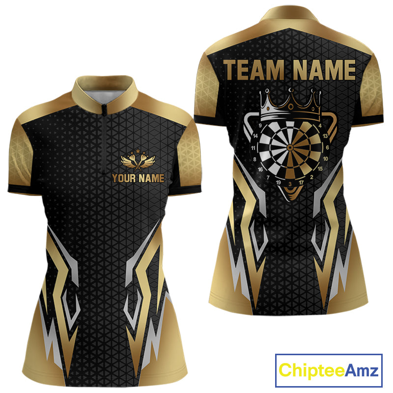 Black And Golden Crown Darts Shirt For Women Custom Darts Jerseys Team Polo & Quarter Zip Uniform TDM4324