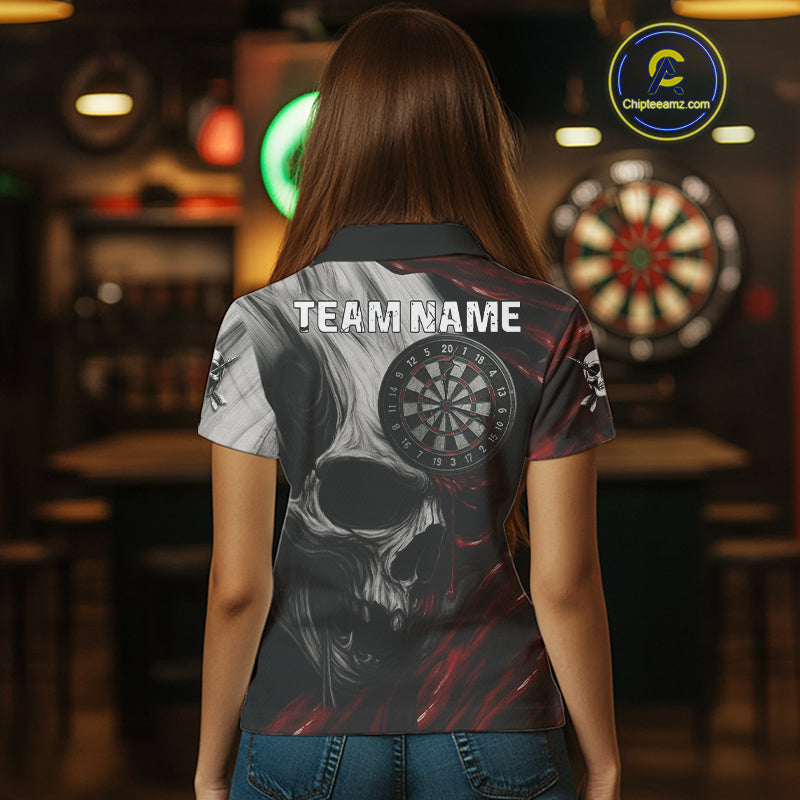 Personalized Gothic Skull Darts Shirt For Women Custom Darts Jersey Team Uniform Polo & 1/4 Zip|Red TDM4379