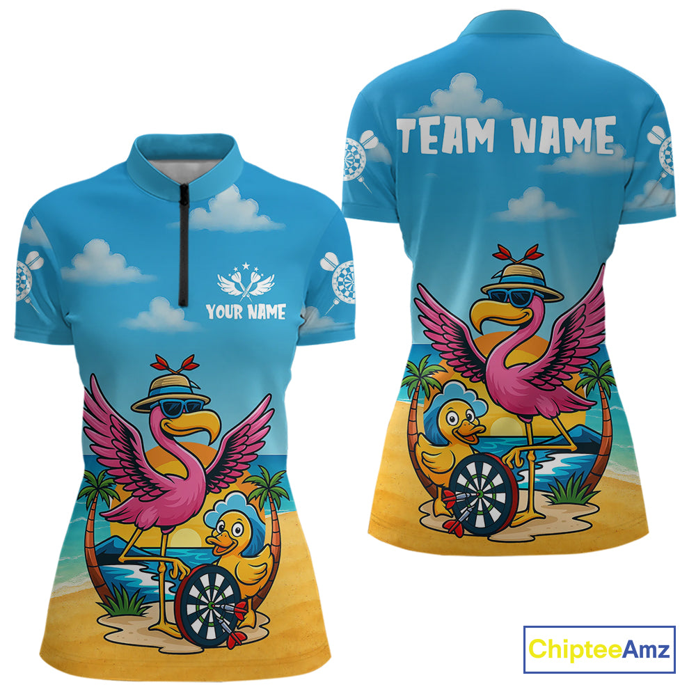 Personalized Funny Tropical Flamingo Darts Shirt For Women Custom Darts Jersey Outfit, Darts Gifts TDM4408